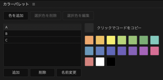 - プルダウン下にパレット&「色追加」「削除」ボタンなどを整理レイアウト