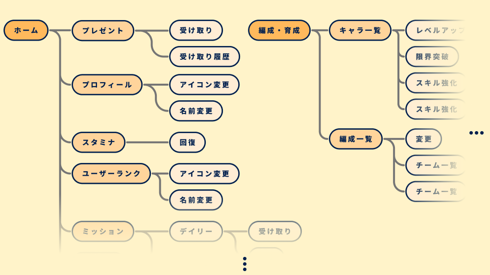 ゲームにはホーム、強化画面、カード一覧、購入確認──といった複雑な階層構造が存在します。